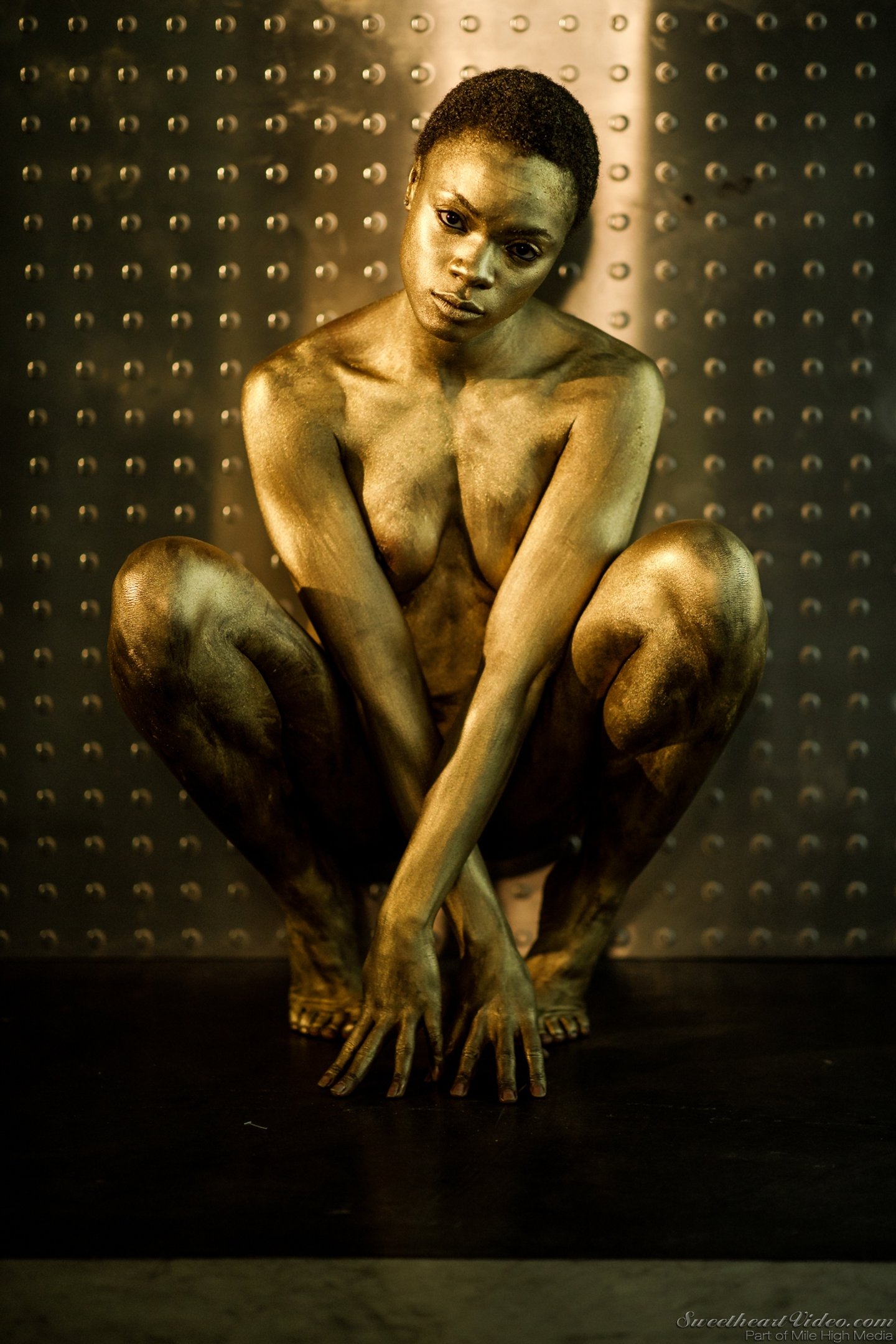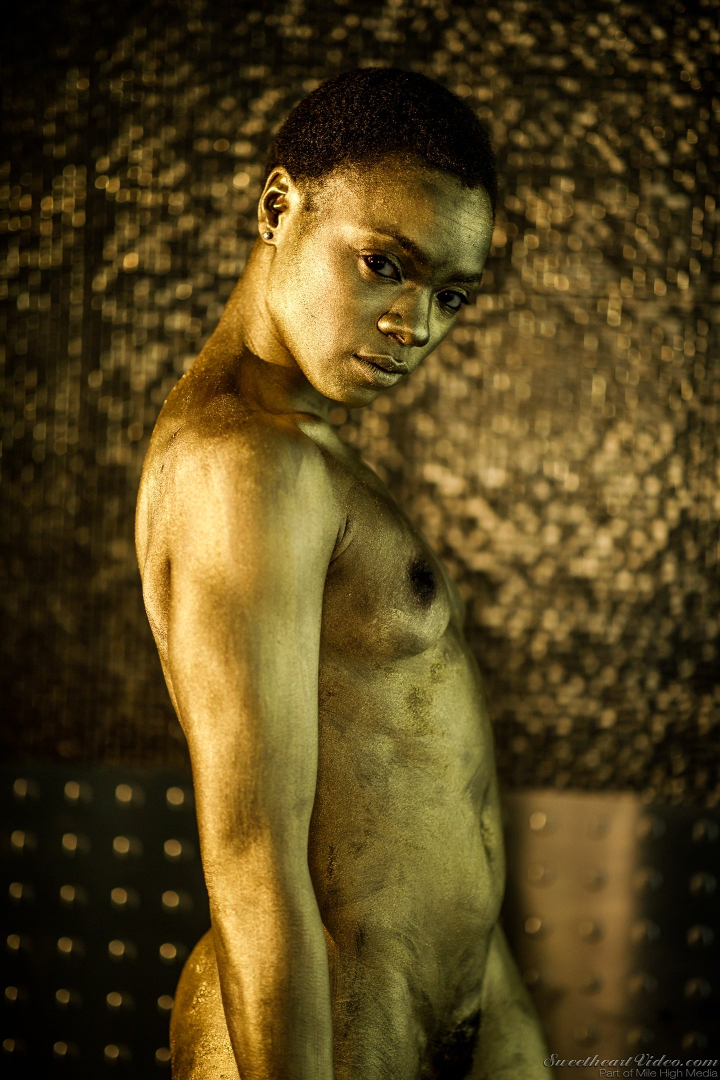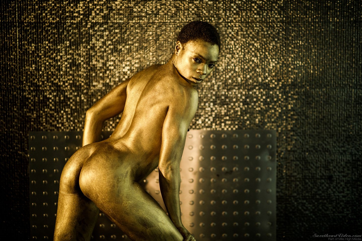 Ana Foxxx shows sexy slim Body all covered in Gold