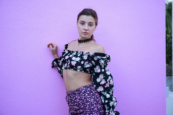 Cute hottie Melena Maria Rya showing her body in a colorful outfit