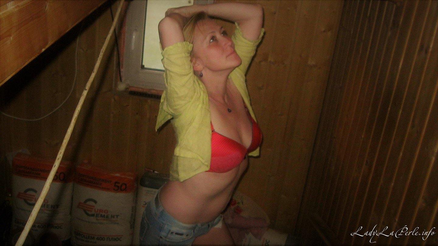 Foxy redhead Gracey Snow smiles while taking off her clothes