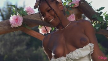 HOrny chocolate babe Hazel Grace strips and rubs her shaved lovebox