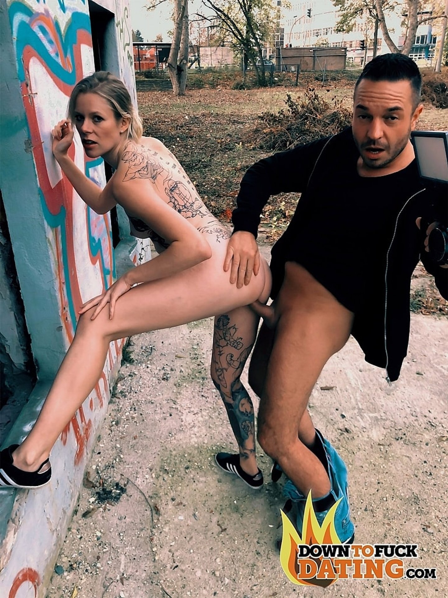 Horny Claudia Bitch enjoys stiff pecker outdoors