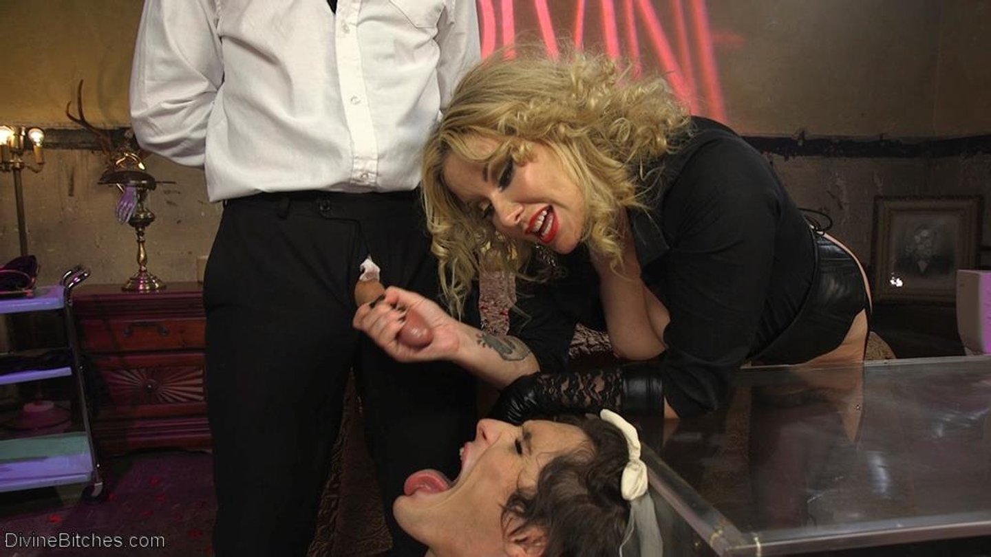 Emma Rosie teases and gets fucked by two dudes during Halloween