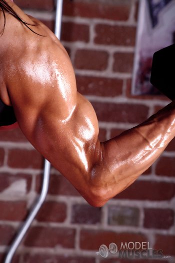 Muscular Babe Marina Lopez lifting some Dumbbells