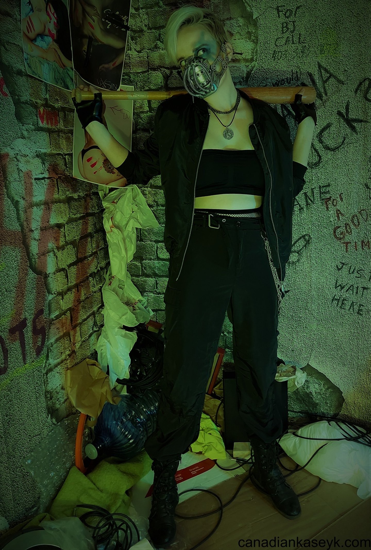 Sexy Lia Lyric wearing black fishnet stockings fingering herself
