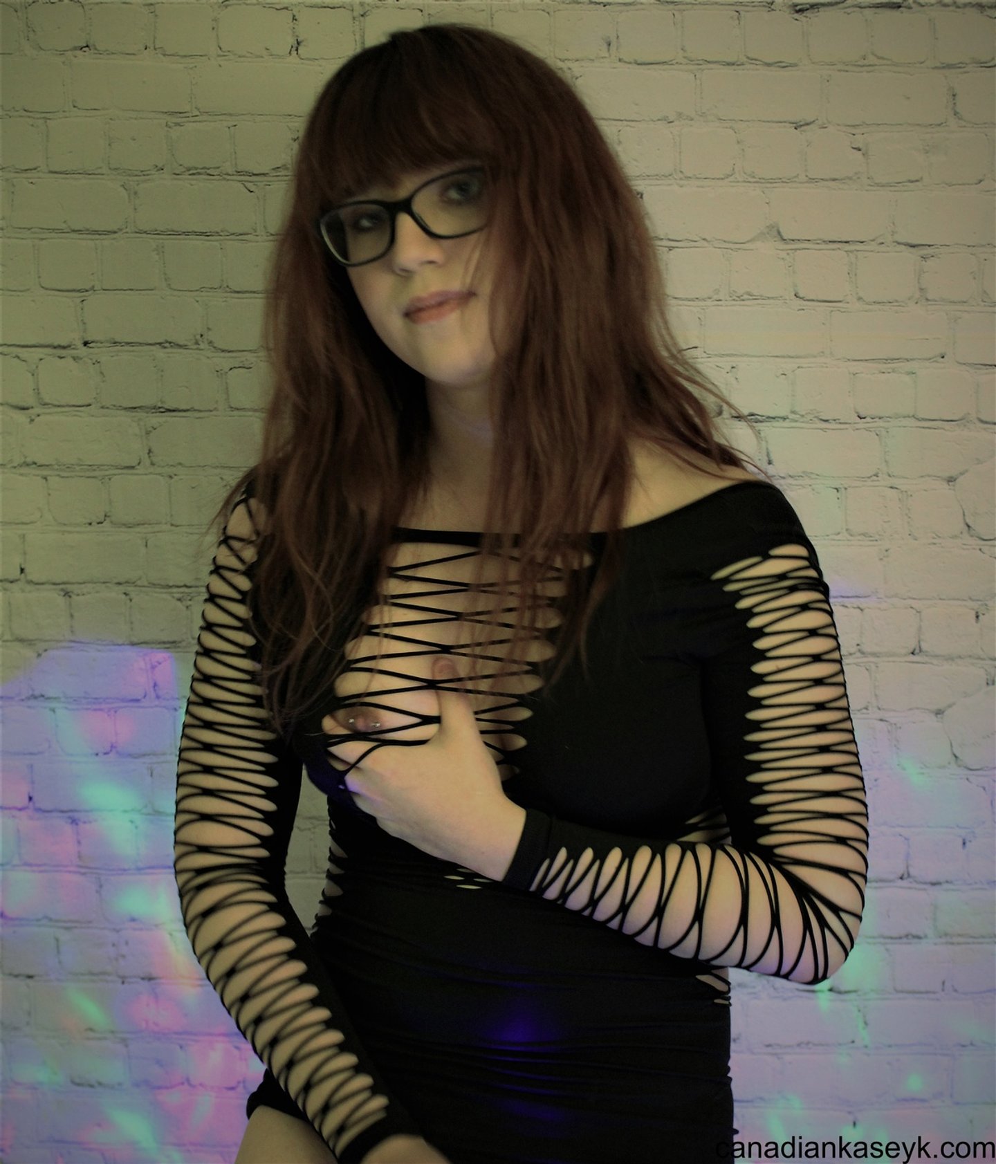 Sexy Lia Lyric wearing black fishnet stockings fingering herself